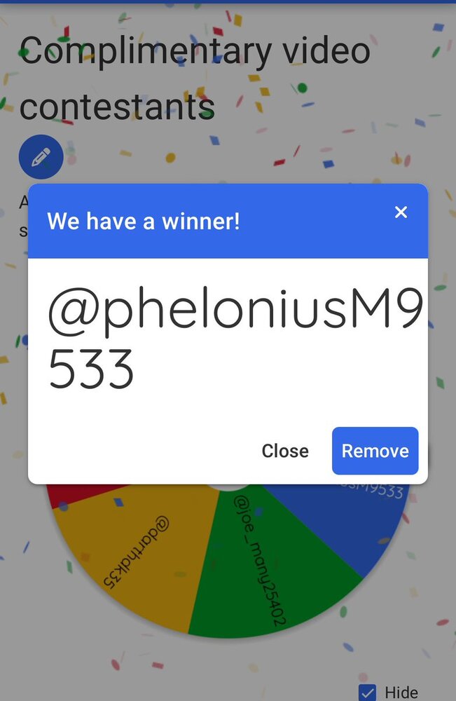 > Winner is PheloniusM9533 !!?