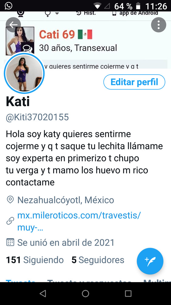 Hola soy caty quieres sentirme cojerme y q t saque tu levhita llámame soy experta en primeriso t chupo tu verga y t mamo loshuebo m rico contactame solo para personas solventes la pasaremos m ricoHiển thị thêm